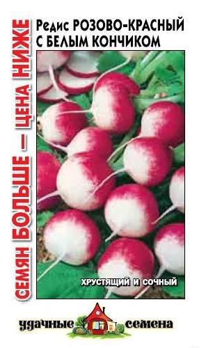 Среднеранний (23-30 дней от всходов до технической спелости) сорт. Корнеплод округлый или эллиптический, длиной 3,5-5,0 см, диаметром 2,5-4,0 см, гладкий, розово-красный с белым кончиком, массой 14-25 г. Мякоть белая и бело-розовая, часто прозрачная, нежная, сочная. Вкус приятный, среднеострый. Пригоден для выращивания в открытом и защищенном грунте. Сорт относительно устойчив к стрелкованию. Урожайность до 2 кг/м2.